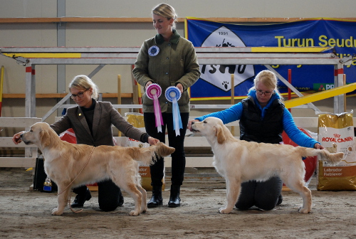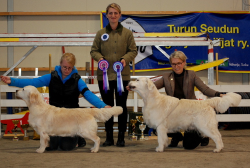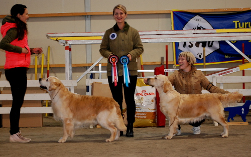 Huikea viikonloppu! Helgan edellispäivän kolmostila kirkastui ykköseksi ja näin ollen Helga sai V-13 -tittelin ja CACIB:in. Näin ollen äiti ja tytär saavuttivat molemmat viikon sisällä voittajatittelit!